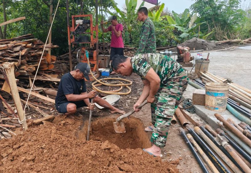 Sejak Jumat (20/2/2026), prajurit TNI bersama warga setempat bergotong royong menggali tanah, memasang peralatan, dan menyiapkan instalasi sumur bor. Pengerjaan dilakukan secara bersama-sama di tengah lingkungan perdesaan yang dikelilingi perbukitan.