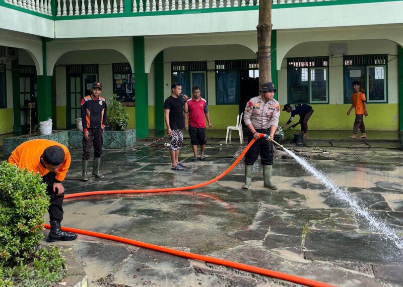 “Selain membersihkan sekolah, kami juga telah memastikan bahwa kondisi lingkungan sekitar sekolah tetap aman dan nyaman untuk digunakan kembali,” imbuh AKBP Ike Yulianto.