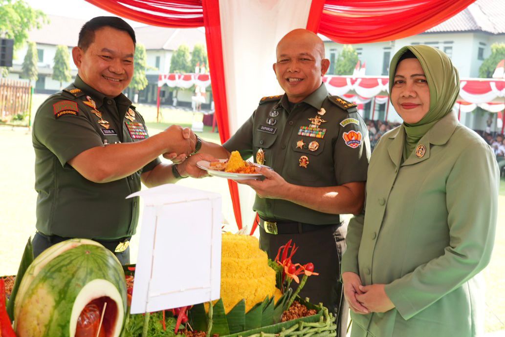 Selanjutnya bapak KASAD didampingi Kepala Pusat Zeni TNI Angkatan Darat (Kapusziad) Mayjen TNI Suparjo dan Ketua Persit KCK Koorcab Pusziad PG Mabesad Ibu Maya Suparjo melaksanakan pemotongan tumpeng dan dilanjutkan dengan foto bersama.