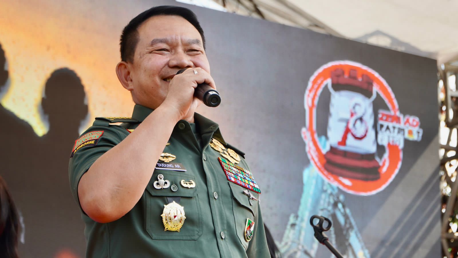 Selanjutnya Kasad menyempatkan diri untuk menyanyikan beberapa lagu, salah satunya adalah lagu AYO NGOPI, disusul penampilan Demonstrasi Yel-yel Prajurit Zeni, Karate dan Musik Arumba dari ibu-ibu Persit.