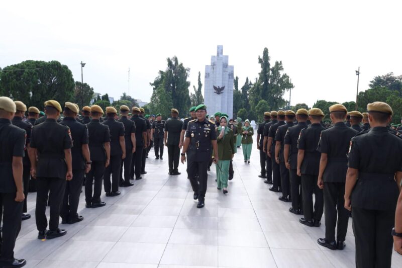 Mayjen Rio Firdianto meletakkan karangan bunga di tugu TMP dengan gerakan perlahan, seolah ingin menyampaikan pesan cinta dari generasi penerus kepada para pejuang yang telah berpulang. Satu demi satu, para pejabat Kodam, tokoh-tokoh militer, hingga Ketua Persit Kartika Chandra Kirana Daerah I/BB turut menaburkan bunga – tak ada kata-kata, hanya lirih hati yang bicara.