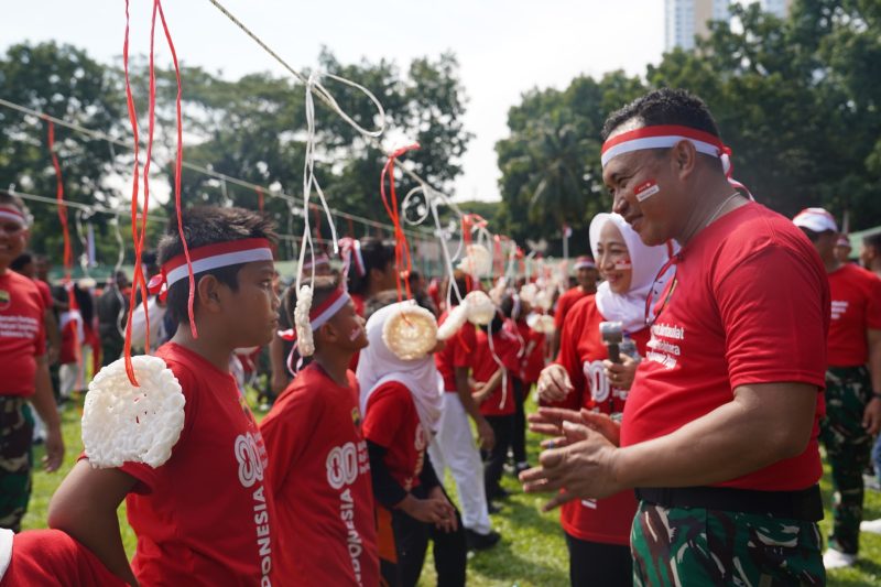 Medan, – Asap sate mengepul, suara tawa pecah, sorak-sorai menggema. Halaman Makodam I/Bukit Barisan pada Minggu (17/8/2025) ini menjelma menjadi arena pesta rakyat. Ribuan orang tumplek blek: prajurit, Persit, pelajar, anak panti asuhan, hingga warga sekitar larut dalam keceriaan.