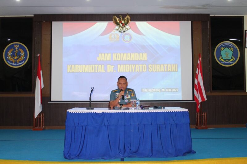 Tanjungpinang, – Suasana Gedung Serba Guna Pulau Serasan, Tanjungpinang, Rabu (18/6/2025) pagi, terasa berbeda dari biasanya. Seluruh personel Rumah Sakit Angkatan Laut (Rumkital) Dr. Midiyato Suratani berkumpul mengikuti kegiatan Jam Komandan yang dipimpin langsung oleh Karumkital, Kolonel Laut (K) dr. Widya Wirawan, Sp.PD., M.H., FINASIM.