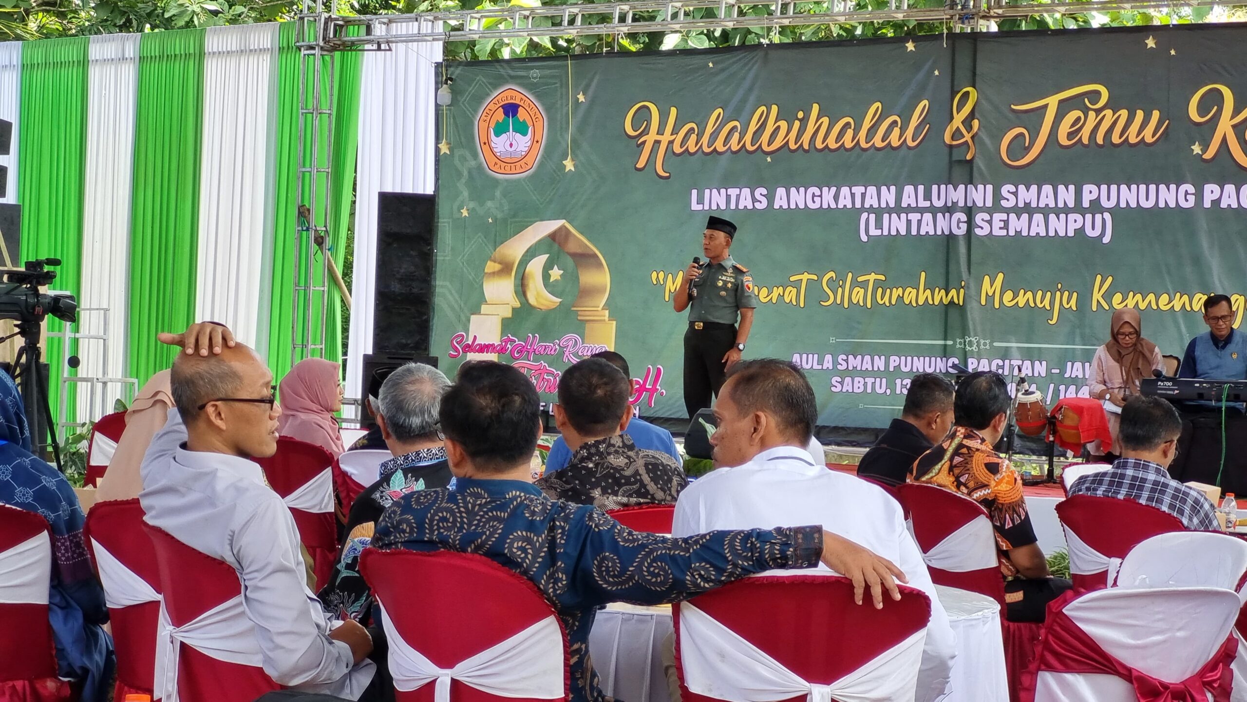 Kegiatan yang mengambil tema “Mempererat Silaturahmi Menuju Kemenangan Sejati” itu dihadiri oleh ratusan alumni dari sekolah tersebut, salah satunya Danrem 081/DSJ Kolonel Inf H. Sugiyono.