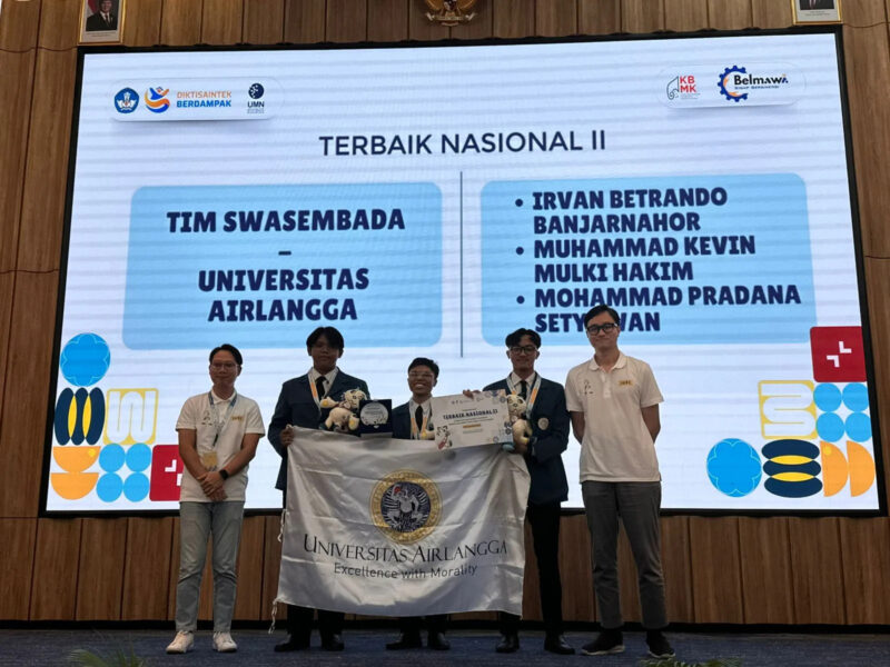 Surabaya, – Prestasi membanggakan kembali diraih mahasiswa Universitas Airlangga (UNAIR). Tim Swasembada UNAIR berhasil meraih Juara II Kompetisi Mahasiswa Nasional Bidang Ilmu Bisnis, Manajemen, dan Keuangan (KBMK) 2025, ajang bergengsi yang diselenggarakan oleh Kementerian Pendidikan Tinggi, Sains, dan Teknologi (Kemdiktisaintek).