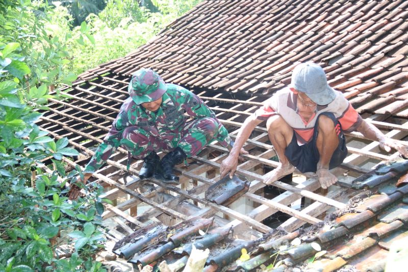 Pembongkaran rumah dipimpin Bintara Pembina Desa (Babinsa) Serda Anas Tauvik dengan melibatkan warga sekitar. Mereka bergotong royong melepas atap dan dinding serta memilah material bangunan lama yang masih dapat digunakan kembali.