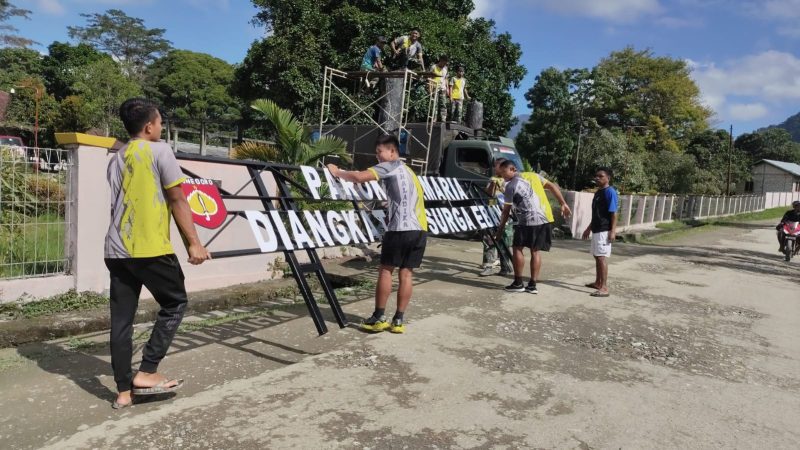Timor Tengah Utara, – Suasana religius di Gereja Paroki St. Maria Diangkat ke Surga, Desa Eban, Kecamatan Miomaffo Barat, Timor Tengah Utara (TTU), kini semakin semarak. Sebuah gapura megah berdiri anggun di halaman gereja, hasil karya anggota Satgas Pamtas RI-RDTL Yonarhanud 15/DBY.
