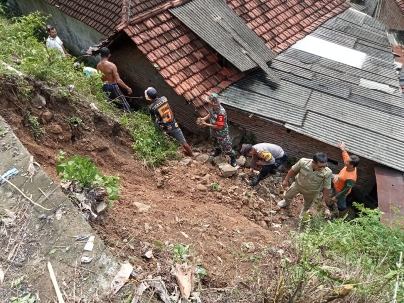 Trenggalek, – Semangat gotong royong dan ketangguhan kembali hadir di Trenggalek saat upaya penanganan longsor berlangsung di RT 47 RW 09, Dusun Sooko, Desa Prambon, Kecamatan Tugu. Pada Selasa (12/11/2024), longsor yang menimpa dapur rumah Suparno akibat derasnya hujan pada Senin (11/11/2024) sore, memicu aksi cepat dari Babinsa Prambon Sertu Imam Taukid, Bhabinkamtibmas Aipda Bambang Hariyanto, dan warga setempat. Tanpa ragu, mereka bersatu, bahu membahu menyingkirkan material longsoran untuk segera memulihkan kondisi rumah warga yang terdampak.
