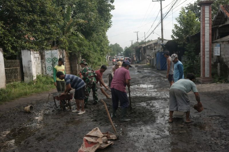 Tulungagung, Jawa Timur – Warga Desa Sumberingin Kidul, Kecamatan Ngunut, Kabupaten Tulungagung, bergotong royong memperbaiki jalan desa yang rusak melalui kegiatan kerja bakti, Jumat (6/3/2026). Perbaikan dilakukan dengan pengecoran pada sejumlah titik jalan berlubang agar akses warga menjadi lebih aman dan nyaman.