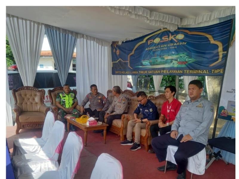 Danramil 0801/02 Kebonagung Letda Cpl Indra selaku perwira jaga di pos pengamanan terminal tersebut menyampaikan, “Kita semua di sini mari bersama-sama melaksanakan tugas dengan penuh rasa tanggung jawab dan memberikan pengamanan secara maksimal kepada seluruh pemudik agar tercipta rasa aman dan nyaman. “ucapnya.