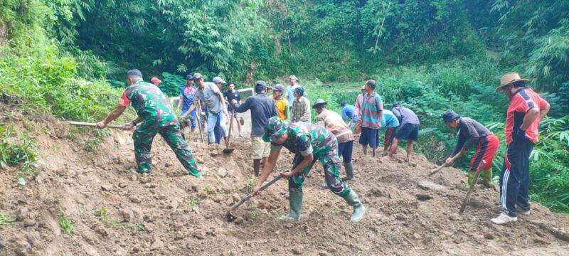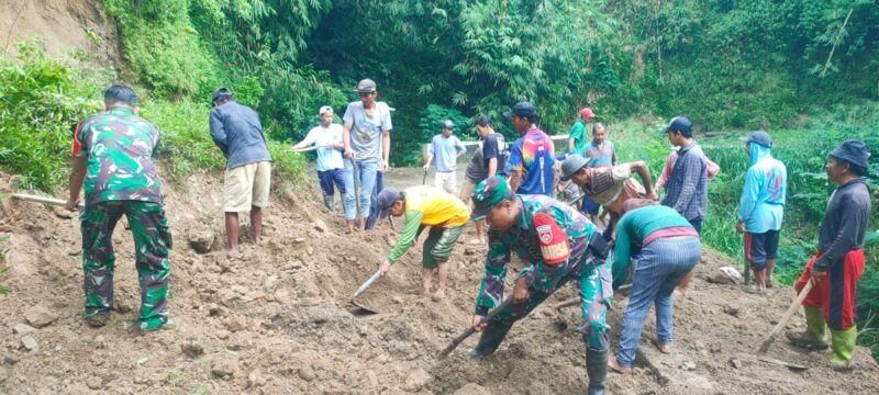 Di sela-sela kegiatan tersebut Babinsa Sertu Agus Wilopo mengatakan, longsor terjadi akibat hujan deras dengan intensitas yang cukup tinggi mengakibatkan tanah longsor menutupi akses jalan.“Dengan alat seadanya, kami bersama masyarakat bergotong-royong membersihkan material longsor berupa tanah menutupi jalan,” ungkapnya.