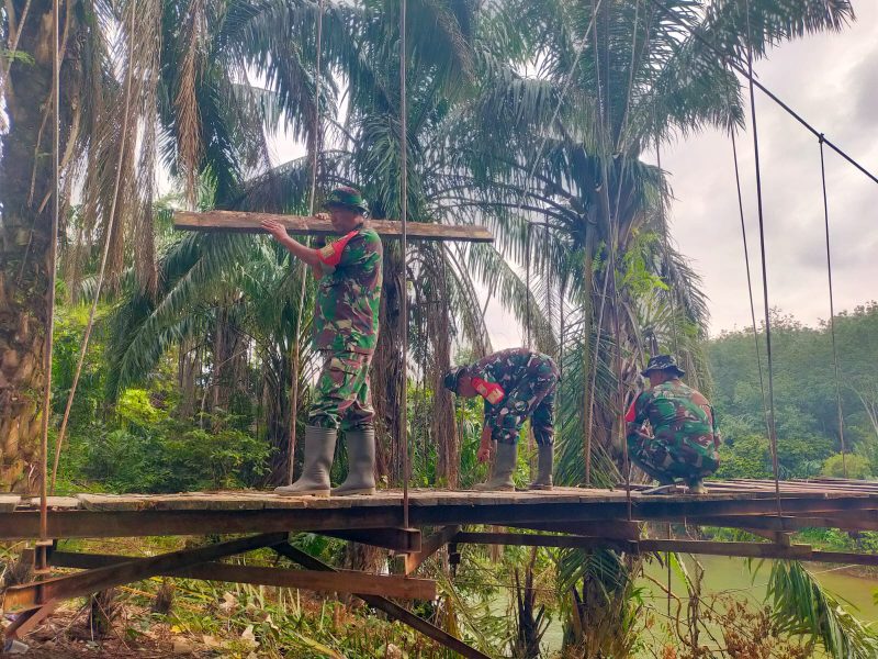 Padang Lawas Utara, Sumatera Utara – Satgas Penanggulangan Bencana Alam (Gulbencal) Kodam I/Bukit Barisan merehabilitasi jembatan gantung di Desa Purba Sinomba, Kecamatan Padang Bolak, Kabupaten Padang Lawas Utara, Selasa (27/1/2026). Perbaikan ini dilakukan untuk memulihkan akses utama warga yang selama bertahun-tahun menjadi penopang aktivitas sosial dan ekonomi masyarakat setempat.