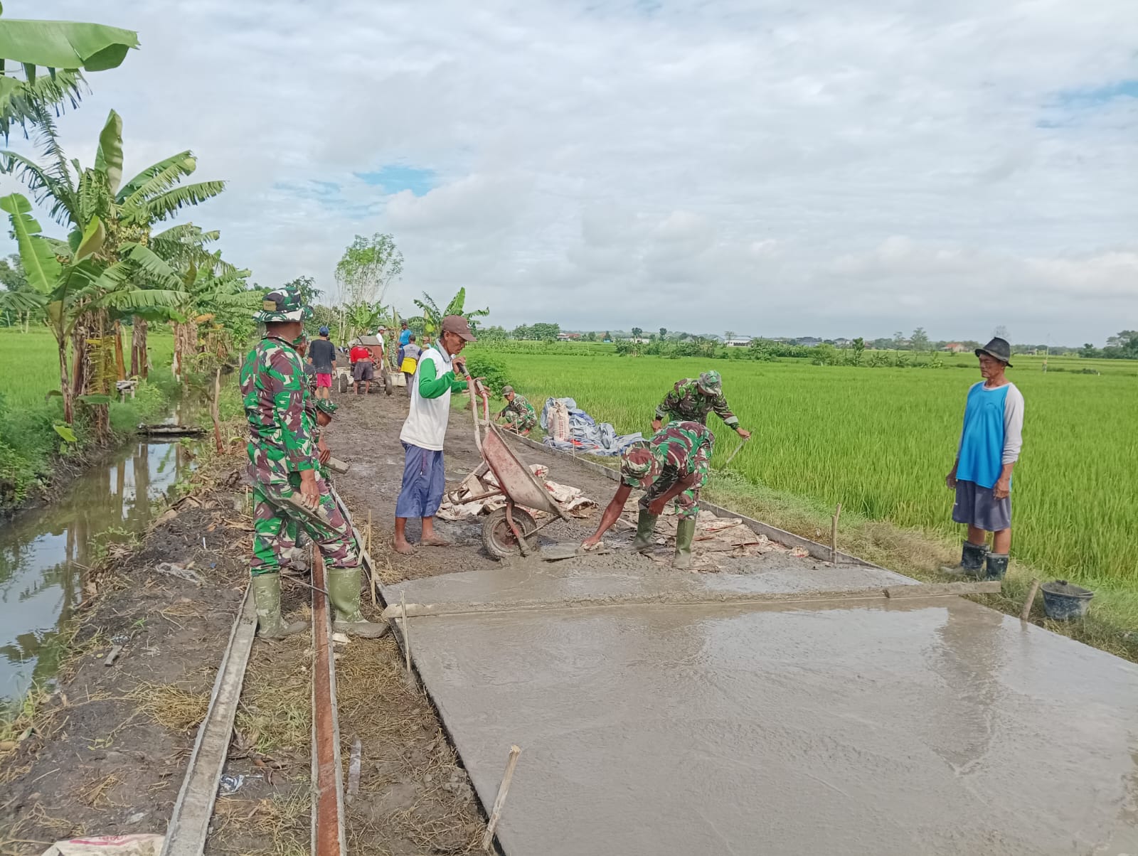 Dalam kegiatan TMMD kali ini, Serda Irwan turut serta menggunakan keahliannya dalam pertukangan. Serda Irwan ikut menjadi tim dalam pengecoran jalan yang menghubungkan Desa Jabung dengan Desa Sidokerto.