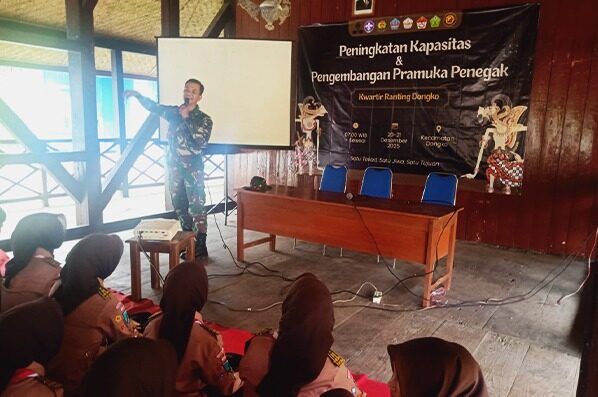 Trenggalek, – TNI melalui satuan teritorial kewilayahan terus menunjukkan komitmennya dalam membina generasi muda yang berkarakter, berwawasan kebangsaan, dan memiliki semangat nasionalisme yang kuat. Komitmen tersebut diwujudkan Koramil 0806-13/Dongko dengan terlibat langsung dalam kegiatan pembinaan Pramuka di Kecamatan Dongko, Kabupaten Trenggalek.