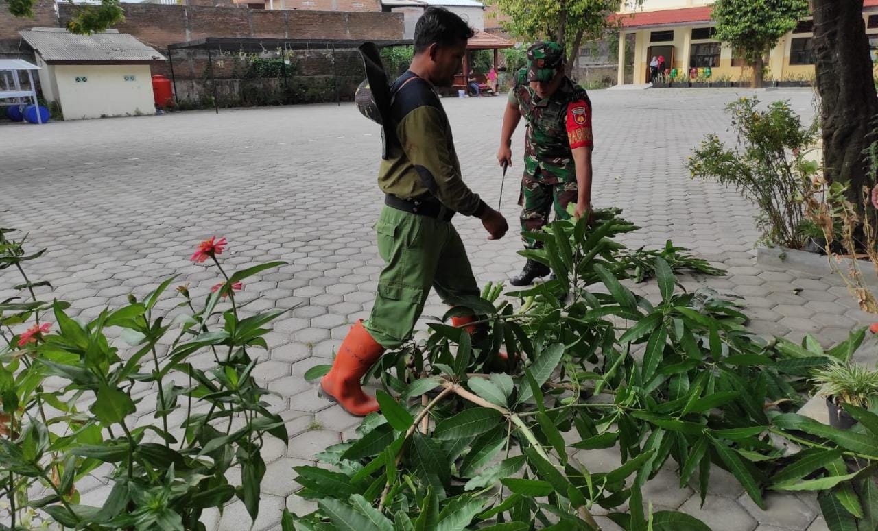 Koptu Resbiyanto mengatakan “pohon-pohon besar yang berada di halaman sekolah itu bisa roboh dan menimpa Anak didik dan gedung sekolahan, Oleh karena itu jika itu membahayakan keselamatan sebagai antisipasi lebih baik ditebang,” tegasnya.