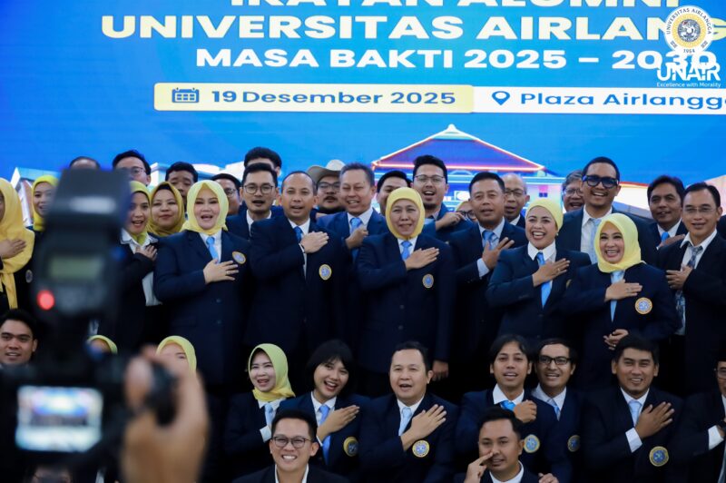 Surabaya, – Universitas Airlangga (UNAIR) menegaskan komitmen penguatan barisan alumni melalui pengukuhan Pengurus Pusat Ikatan Alumni Universitas Airlangga (IKA UNAIR) Periode 2025–2030. Upacara pengukuhan berlangsung khidmat dan tertib di Plaza Airlangga, Kampus C UNAIR, Jumat (19/12/2025), dihadiri jajaran pimpinan universitas, pengurus pusat IKA, serta alumni lintas generasi dari berbagai medan pengabdian.
