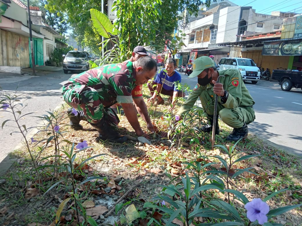 SURAKARTA – Babinsa Kelurahan Kemlayan Koramil 03 Serengan Kodim 0735 Surakarta Serka Abdul Rumbawa melaksanakan penanaman pohon mangga madu bersama Linmas dan warga bertempat di Jl Dr. Rajiman RT 01 RW 04, Kelurahan Kemlayan, Kecamatan Serengan, Kota Surakarta, Minggu (25/6/2023).