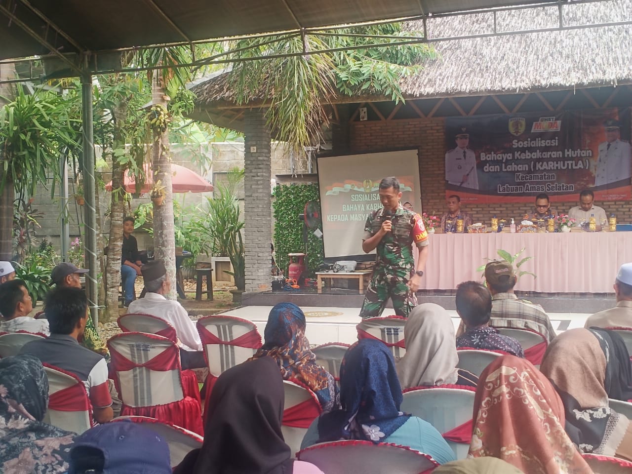 BARABAI – Komandan Kodim 1002/HST Letkol Inf Fery Perbawa, S.Hub.Int., M.Han menjadi narasumber dalam kegiatan sosialisasi Karhutla di Caffe Rezstwo desa Sungai Rangas Kecamatan Labuan Amas Selatan Kabupaten Hulu Sungai Tengah, Kamis (9/11/2023).