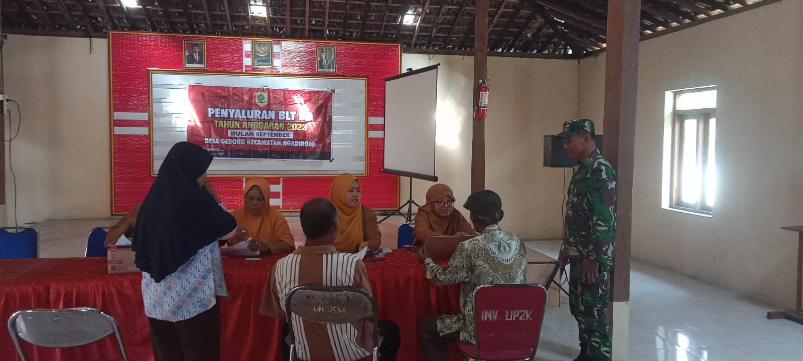 Anggota Babinsa Koramil 03/Ngadirojo turut membantu kelancaran kegiatan, dengan melaksanakan pendampingan dan monitoring kegiatan pembagian BLT DD tersebut, Rabu (6/9/2023).