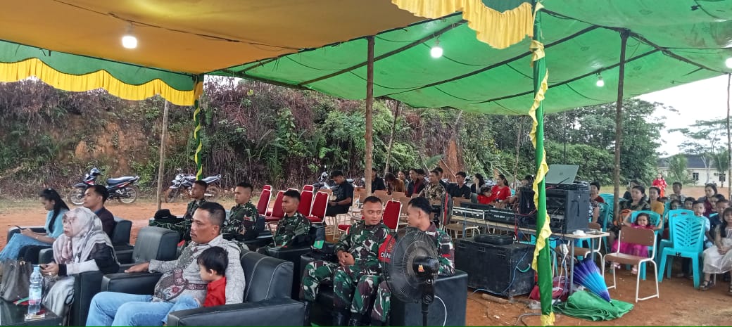SEKAYAM – Wujudkan sikap toleransi antar umat beragama di wilayah perbatasan, Satuan Tugas Pengamanan Perbatasan (Satgas Pamtas) RI-Malaysia Yonarmed 10/Bradjamusti Pos Sei Beruang hadiri perayaan Natal bersama warga Di Dusun Sei Beruang, Desa Sei Tekam, Kecamatan Sekayam, Kabupaten Sanggau, Kalimantan Barat.