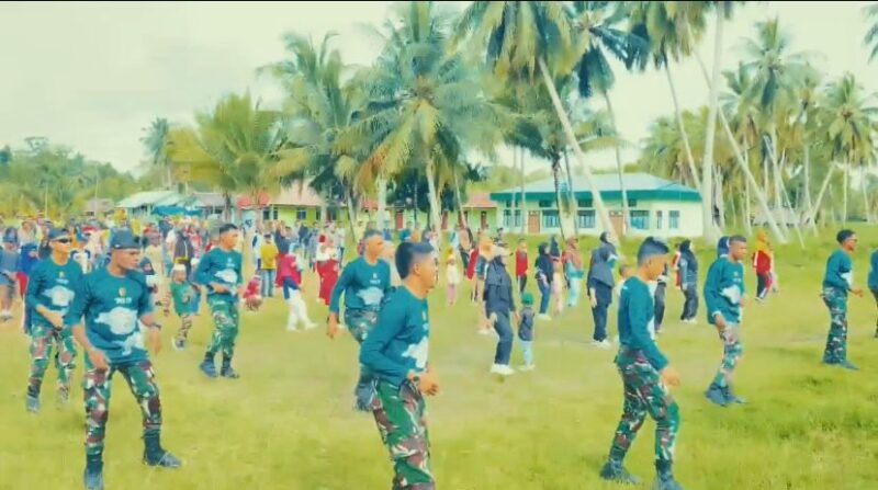 Sorong Selatan, – Kabut pagi masih menempel di pucuk pepohonan ketika dentuman musik terdengar dari Lapangan Distrik Tarof, Kokoda, Kabupaten Sorong Selatan, Papua Barat Daya. Anak-anak sekolah berlarian menuju lapangan, sementara beberapa prajurit berseragam olahraga menata barisan. Hari itu, Kamis (6/11/2025), suasana Kokoda terasa berbeda: warga dan prajurit Satgas Pamtas RI-PNG Yonif 763/SBA Pos Kokoda bersiap menari seirama dalam senam kebersamaan.